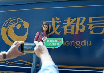 “熊猫专列·成都号”首趟列车从成都安靖站发车,带领109名游客开启新疆之旅。